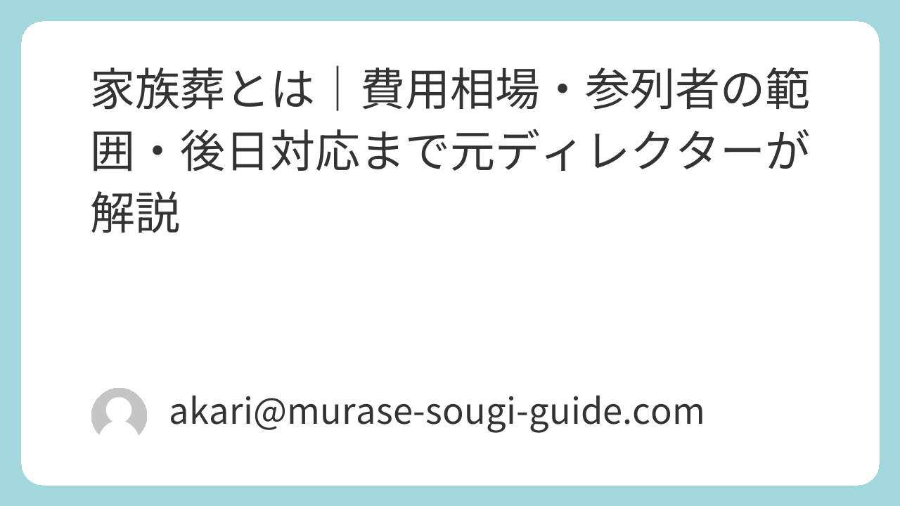 - 参列者「家族葬=家族のみ」は誤解。故人と親しかった友人・知人も参列できます。範囲の決め方が最大の悩みどころです。