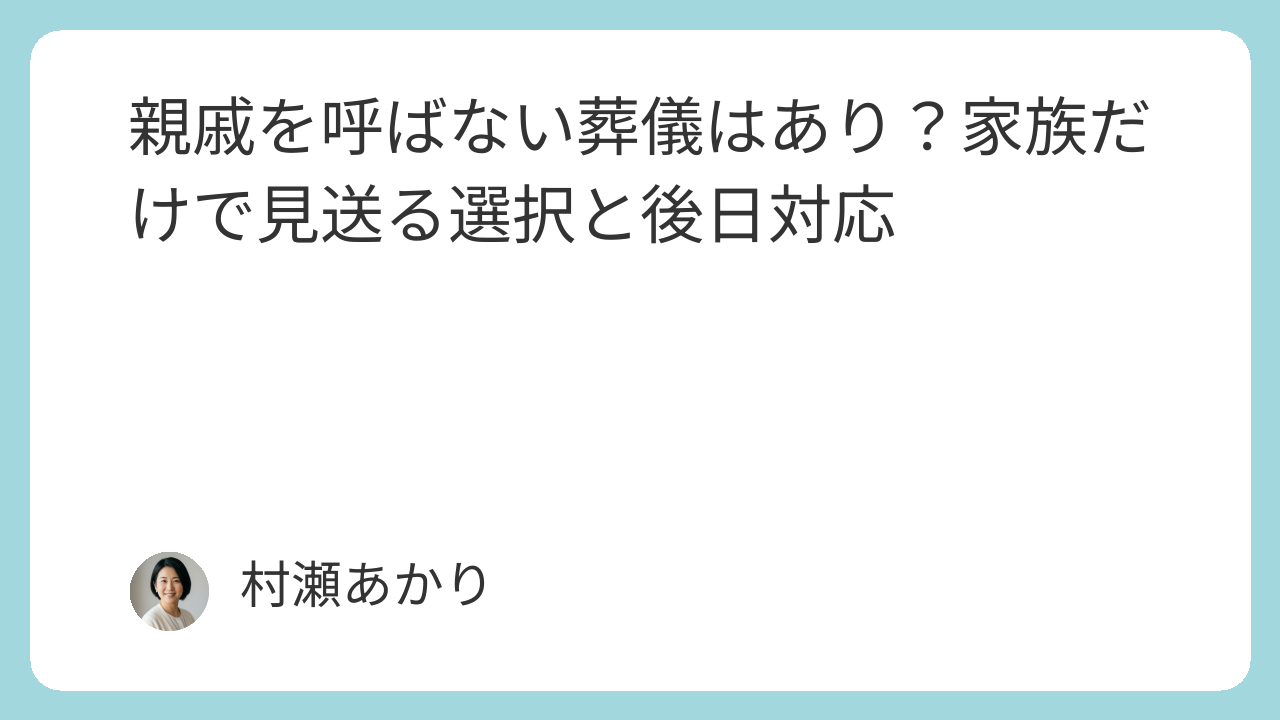 結論から言います。親戚を呼ばない葬儀は、できます。「家族だけで見送る」という選択は、決して非常識ではありません。ただし、後々のトラブルを防ぐために知っておくべきことがあります。この記事では、現場経験11年の元葬儀ディレクターが正直にお伝えします。