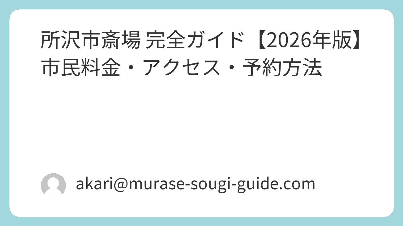 所沢市斎場 完全ガイド【2026年版】市民料金・アクセス・予約方法